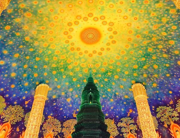 素晴らしい宇宙のような天井画と翡翠(なのかな?)の塔が感動的で、日本人がこぞって来ているインスタスポット!