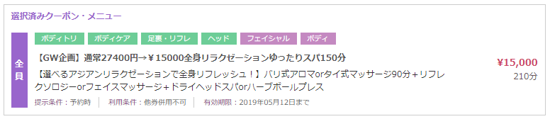 選べるリラクゼーション150分。